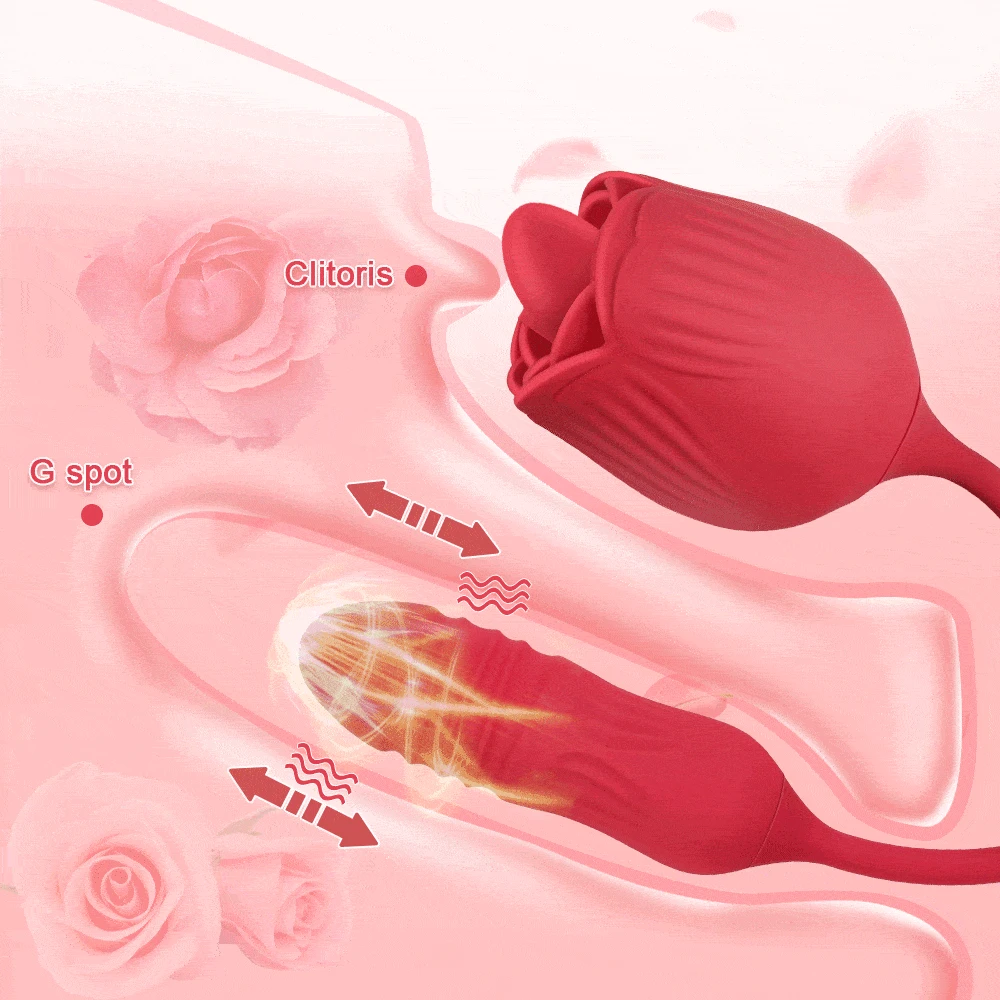 【10 Modes and 10 Powerful Speeds】Rose vibrator has ten licking modes, which can be changed individually, and the G-spot Dildo also has ten retraction speeds, which can be adjusted to the appropriate degree of acceptance. The two vibrators are not affected by each other, and the dual experience is adjusted separately.